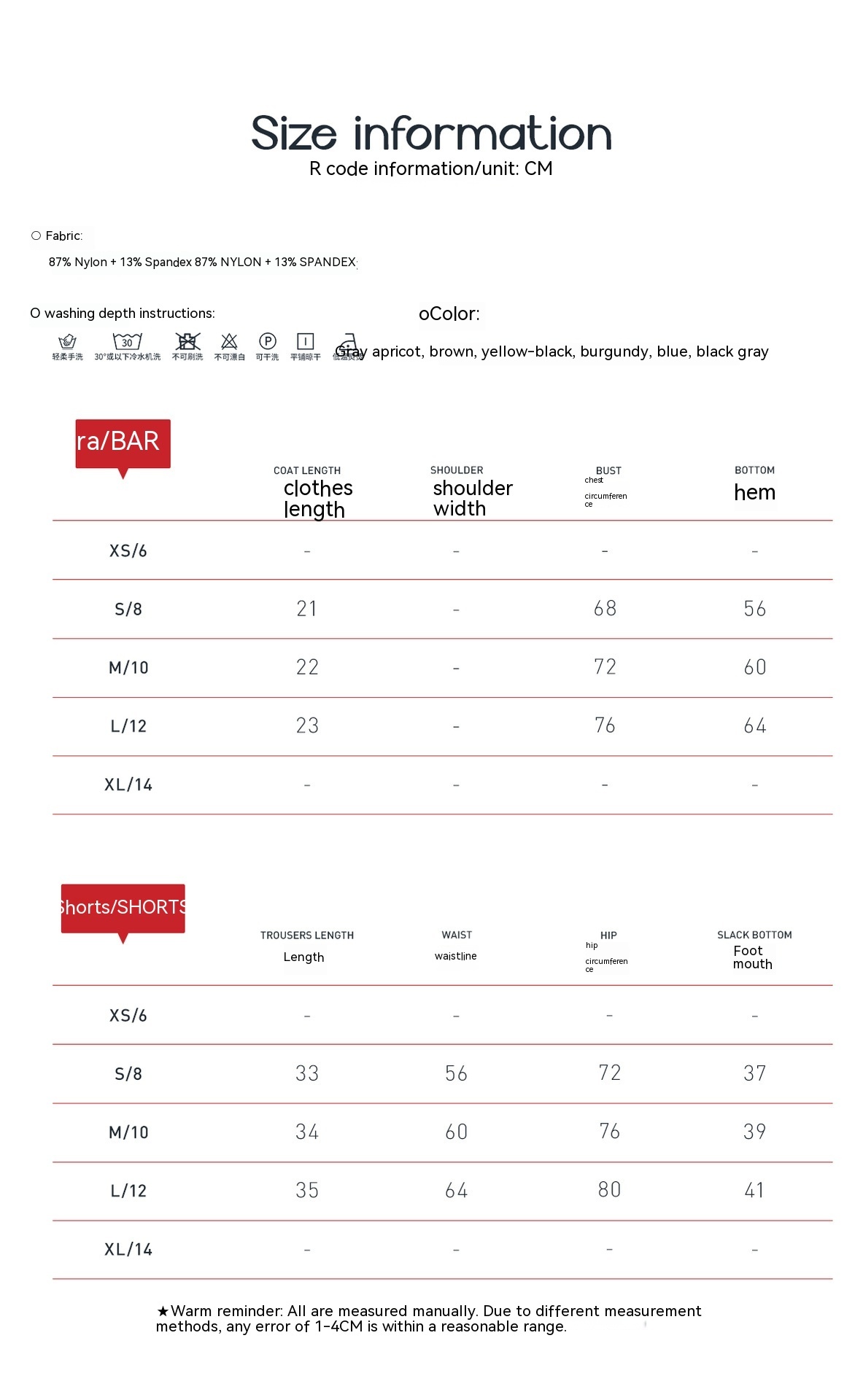 Color: Brown bra shorts, yellow and black bra shorts, wine red bra shorts, blue bra shorts, black and gray bra shorts, brown bra trousers, yellow and black bra trousers, wine red bra trousers, blue bra trousers, black and gray bra trousers, orange bra shorts, snake gray bra shorts, celandine green bra shorts, purplish gray bra shorts, orange bra trousers, snake gray bra trousers, celandine green bra trousers, purplish gray bra trousers