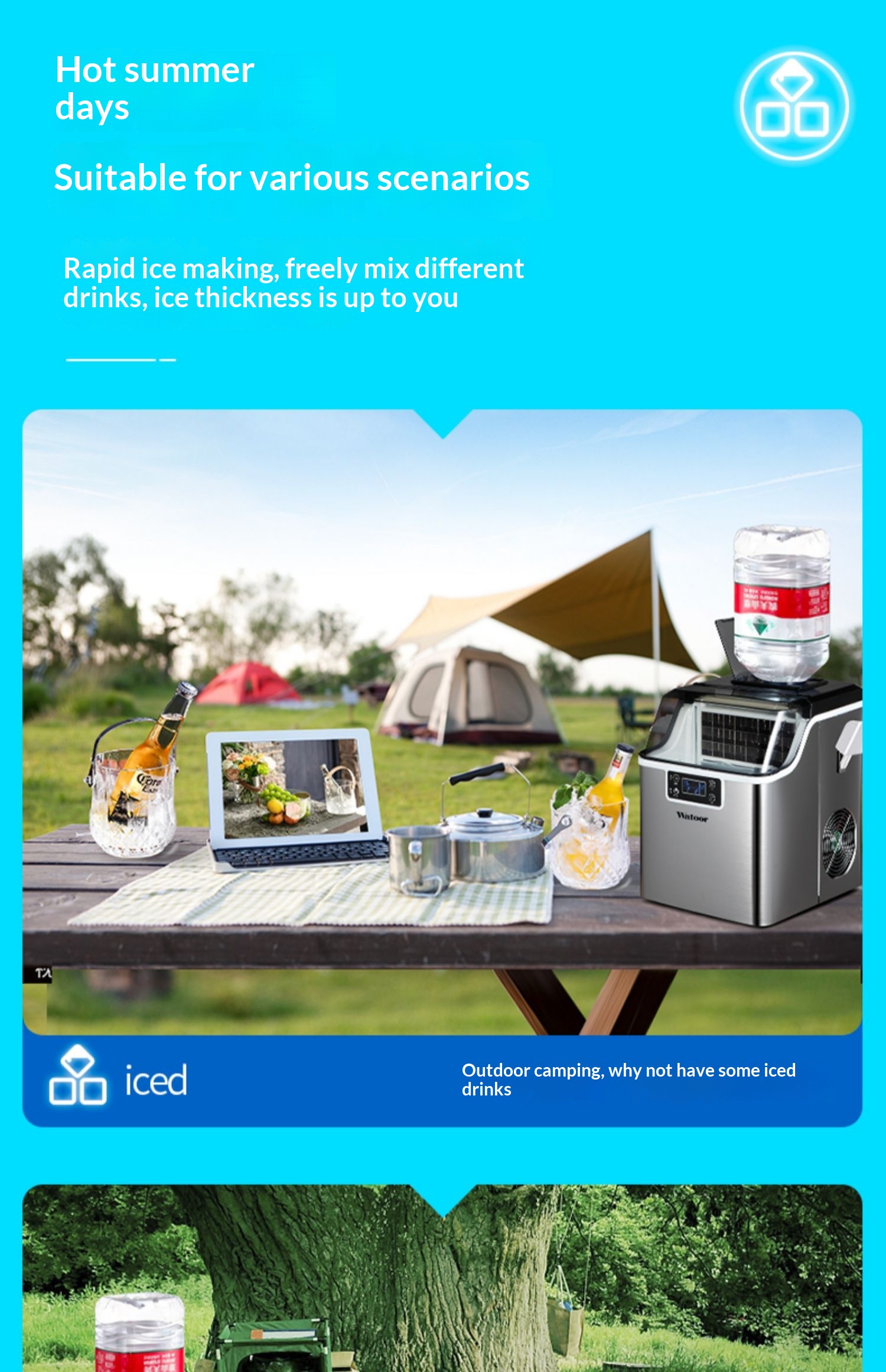 Style: Colorful dual-function ice maker that simultaneously provides both cold and hot water—top-loading bottled water model